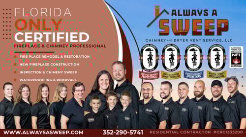 Always A Sweep Chimney, Gas, and Dryer Vent Services is your trusted expert for fireplace, gas line, and dryer vent safety across Florida and beyond. Our certified technicians specialize in chimney cleaning, inspections, repairs, gas log installation, gas line services, and professional dryer vent cleaning. Whether you're preparing for winter or safeguarding your home from fire hazards, we provide fast, reliable service with honest recommendations and no high-pressure sales. With decades of experience and a commitment to customer satisfaction, Always A Sweep helps protect what matters most—your home and family.