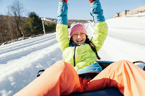 Experience the thrill of Poconos snow tubing at Camelback Resort, ranked #2 in the USA! With an impressive selection of over 40 lanes, you can have a blast all day and night with lights aglow. Glide down illuminated lanes for endless fun, and thanks to our convenient Magic Carpets, you'll be back up the hill in no time for another exhilarating ride. Snow tubing sessions last for two hours and begin every hour on the hour. Come and join us for an unforgettable winter adventure in the Pocono Mountains!
