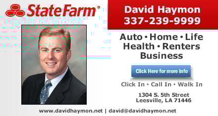 It is such an honor to be an agent and serve the people in my hometown of Leesville/Fort Polk. After attending school in Vernon Parish and graduating from Leesville High School, I attended Louisiana Tech University where I graduated Summa Cum Laude with a Bachelor of Science Degree in Finance and immediately married my high school sweetheart while starting my career with State Farm. After many moves and positions within the company, it was our pleasure to move back home to serve as a State Farm Agent for Leesville, the "Home of Heros" -- Fort Polk and all the surrounding communities in central Louisiana and east Texas. I am a second-generation State Farm Agent. Over the years my agency has qualified for different awards including State Farm Chairman's Circle and State Farm Ambassador Travel.I continue to be active in the community as a member of the Vernon Parish Chamber of Commerce and its Military Affairs Committee, the Leesville Lions Club, the local schools (where I frequently speak and sponsor events).Here at the David Haymon State Farm Insurance Agency, we are proud to serve Leesville, Fort Polk, Rosepine, DeRidder and the surrounding Louisiana and Texas areas with Car Insurance, Homeowners Insurance, Renter's Insurance, Boat Insurance, Condo Insurance, Motorcycle Insurance, RV Insurance, ATV Insurance, Pet Insurance, Business Insurance, Life Insurance and Financial Services. We are also here to help with resident relocations to the Vernon Parish and east Texas area.