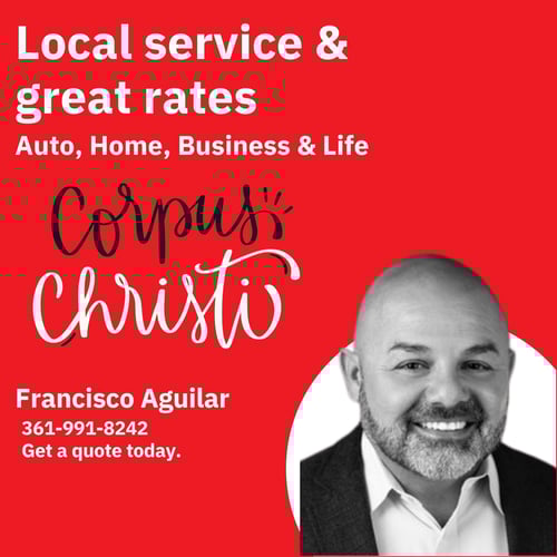 TX-1607579 The mission of the Francisco Aguilar State Farm office is to provide Corpus Christi and surrounding Nueces County with reliable insurance coverage they can count on. Our office can help with auto insurance, homeowners insurance, renters insurance, life insurance, business insurance, financial services, and much more. Stop in and meet with our experienced insurance team to stay protected.