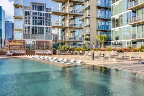 Our community ingeniously combines high-rise living with outdoor space. Relax in the infinity edge pool as the city below unfolds at your feet. Gather with friends on the amenity deck and take advantage of our grills. Enjoy the inviting fireplace year-round on the rooftop sky deck.