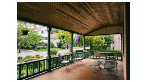 A 3-course breakfast is served in a warm dining room. There's a furnished wraparound porch, and a lush garden with sitting areas. Other amenities include a game room, a parlor with a fireplace, and a lounge with a balcony. Parking and loaner bikes are available.