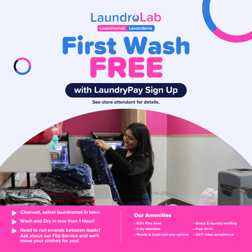 Last wash at 9:45pm daily. LaundroLab is your new favorite Charlotte laundromat! Located at 5618 Albemarle Rd, enjoy a clean, convenient and modern laundry experience. Our fully attended Eastland location offers self-service, wash dry fold, and commercial laundry services. Get in and out in just 35 minutes with our new Electrolux Equipment. Pay with the convenient LaundryPay app or with cash or coins. Take advantage of big load washers, free Wi-Fi, big-screen TVs, snack and soap vending. Plus, enjoy ample folding space, lots of seating and a learning area for kids. Short on time? Try our drop off laundry service for expertly folded laundry. Visit LaundroLab Eastland at 5618 Albemarle Rd and see why LaundroLab is the best laundromat in Charlotte!