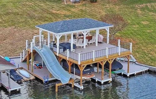 Mid-Atlantic Dock Builders is an insured, Class A Licensed with Highway Heavy and Marine Certification. Although there are many similarities to on-land construction, building a boathouse over the water requires a very specific set of skills, experience, and equipment. Mid-Atlantic's management is made up of over forty years of combined dock building experience. Our carpenters receive extensive training on how to create the best product for our lake clients. Contact us for a free estimate on building the boat house of your dreams.