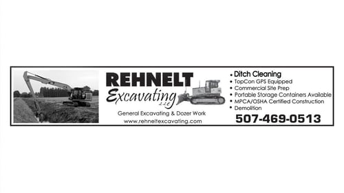 Rehnelt Excavating LLC Provides Ditch Cleaning, Topcon GPS Equiped, Commercial Site Prep, Portable Containers Available, MPCS/OSHA Certified Construction and Demolition to the Kasota, MN Area.