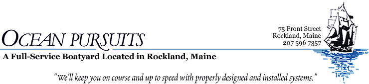 Ocean Pursuits is a family-owned and -operated boatyard located on the Rockland waterfront. It was established in 1987 by Bill Cowan, a USCG-licensed sailing captain. He brings his twenty-plus years of nautical skills and technical experience home after sailing worldwide. He knows firsthand the importance of having a vessel properly constructed and maintained with working systems. Ocean Pursuits is committed to giving you quality work at affordable prices. Our satisfied customers include boatbuilders, recreational boat-owners (both power and sail) and commercial fishermen. Boatyard Services All boats and owners are unique. We at Ocean Pursuits boatyard will work with you to achieve exactly what you need for your boat. Ocean Pursuits waterfront location allows us to offer a complete line of services that include haul & launch, rigging, repairs and complete systems service. Our full-time, year-round crew is a complement of craftsmen that includes skilled joiners, painters, varnishers, licensed electronic technicians and certified marine refrigeration and mechanical mechanics. If you are interested in having a complete system upgrade, new wiring, a cosmetic refit, AWL Grip paint, a coat of varnish, or if you are just looking for a safe, honest yard to store your boat, then we are the yard for you. Spring Commissioning and Fall Decommission Maintenance and Care Programs long- and short-term programs Restorations and Refits projects range from new construction to structural refits Electrical Systems designed, installed and repaired Electronics from radar to satellite communications Engines, Mechanical and Plumbing new engines, cabin heaters, air conditioners, refrigeration, etc. Painting and Varnishing AWL Grip, Epifanes and enamel Carpentry from teak decks to interior joinery Fiberglass Work hull repairs to radar arches Rigging sails, running and standing rigging Detailing from buff-and-wax to color restoration Ocean Pursuits has in-house engineering and design services for all major and minor repairs. We work on the customers' behalf to complete all projects on time and on budget. Our knowledgeable and experienced crew sets the standard for complete customer satisfaction. Our projects range from small refits and electronic packages to complete restorations. Ocean Pursuits repairs both fiberglass and wooden boats. Electrical Systems Specialists Diesel and Gas Engine/Generator Technicians Mechanical Systems Paint and Varnish Refinishing Insurance Repairs Fiberglass Repairs ? Deck and Hull Osmotic Blisters Repair Major/Minor Structural Repairs Yacht Joinery Yacht Rigging We currently store upward of 75 boats, ranging in size from 19 ft. to 52 ft. Our hydraulic trailer hauls boats out at our ramp. Our storage package includes haul, wash, storage, stands, blocks and Spring launch. Contact us for information on Fall decommission and Spring commissioning. Also available: inside mast storage, shrink-wrapping. Yacht Brokerage We have recently entered the yacht brokerage business at the request of our long-standing customers. We're excited about this new venture which draws on our extensive sail and power boat experience and technical expertise. We would be very happy to meet with you if you are interested in selling or buying a boat.