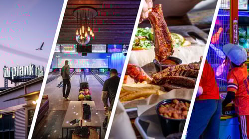 Located in the picturesque Oakland waterfront at Jack London Square, plank is a unique experience with over 50k square feet of indoor/outdoor space complete with a restaurant, beer garden, multiple bars, 18 bowling lanes, over 50 arcade games, a captivating prize store, and The Hub featuring a stunning 30ft media wall. Delight in a diverse menu and vibrant atmosphere while enjoying weekly events such as live music performances – making every visit to plank an unforgettable adventure.