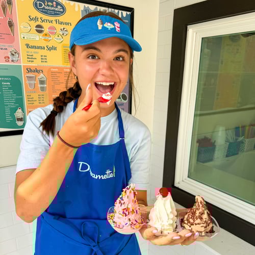 Ice cream in Jacksonville has never tasted better! San Marco Dreamette is a classic ice cream shop serving Jacksonville's best ice cream. Award-winning ice cream shop in the heart of San Marco serves up ice cream cones, sundaes, banana splits, shakes, root beer floats, freezes, slushies, and more delicious desserts. Vegan ice cream is our specialty as well, featuring vanilla and Dole soft serve. Family-friendly environment perfect for a special gathering or casual drop-in. Outdoor seating only. Plenty of parking in lot and across street. DoorDash and UberEats delivery. Kosher certified.