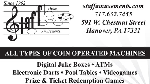 Staff Music & Amusements has been providing quality games, ATM’s, jukeboxes, and reliable service for over 50 years. We service South Central Pennsylvania including York, Adams, Fulton, Franklin, and Lancaster Counties. We also service Carroll, Frederick, and Washington Counties in Maryland.
