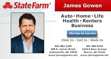 The James Gowen State Farm Insurance office is proud to serve Searcy, AR with Insurance and Financial Services, with a focus on resident relocations to the Searcy County area. I am your State Farm Insurance Agent for the Searcy, AR area. I have been a State Farm Agent since 2010. I am a graduate of Graduate of Bowen (Little Rock), 1998, Graduate of Harding University (M.S.E.), 1995, Graduate of Harding University (B.A.), 1992! I am also a member of the Jacksonville Chamber of Commerce, Little Rock Air Force Base Community Council member, and Delta Waterfowl Member. My team and I are Ambassador Travel Qualifiers. My team of licensed Insurance Professionals and I are here to help get you correct Insurance coverage for your specific needs. Not only can we help with Auto Insurance, Homeowners Insurance, Renters Insurance, Life Insurance and Financial Services to the Searcy, AR area including the surrounding Searcy County area but we are also able to assist small business owners with their Commercial lines of Insurance. Give us a call today for a personalized Insurance Quote!